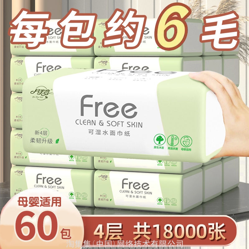 【60包一年加量装】原木抽纸整箱批发家用1包可湿水卫生纸巾实惠